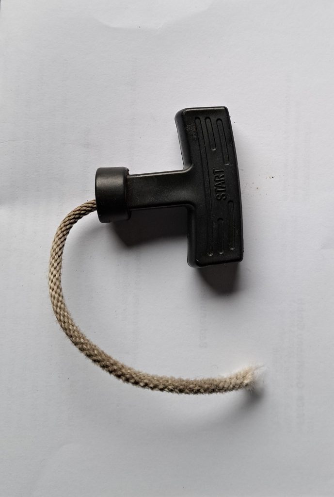 Schon beim kurzen Check einige Tage vor dem Contest stellte ich fest, daß der Moppel nicht betriebsbereit war. Das Zugseil zum Anwerfen des Generators war gerissen und das war irgendwie in Vergessenheit geraten.
