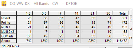 Der Contest beginnt um 1:00 Uhr Küchenzeit am Samstagmorgen und läuft dann 48 Stunden. Die QSOs sind recht einfach: Ausgetauscht wird der Rapport (Contest-mäßig immer 599) und die CQ-Zone (DL -> 14). Die Chancen auf eine der TOP Platzierungen sind in der Categorie max 100W, Single Operator assisted mit relativ gering – es gibt zu viele Stationen mit guten Antennen und sehr guter Betriebstechnik. Ferner sollten die Bedingungen über Nacht auch nicht gut sein. Also hatte ich beschlossen, erst am Samstag gegen Mittag in den Contest einzusteigen.