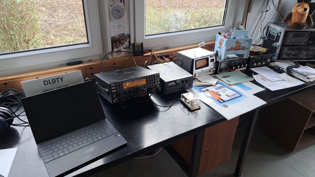 Bevor es aber losgehen sollte hatte ich mich noch mit Niels, DH8ND, dem stv. OVV vom Ortsverband H13 verabredet. Niels möchte einen Mesh-Knoten bei uns aufbauen und es gibt auch beim OV H13 OMs, die vielleicht Interesse an gemeinsamen Aktivitäten haben. Also erfolgte eine Schlüsselübergabe und kurze Einweisung für Niels. Niels wurde noch durch OM Olaf, DH1OME begleitet. (In der Woche nach dem Contest ergaben sich aus einem Gespräch mit Gerd, DB1AI noch weitere Ideen – dazu mehr auf dem OV-Abend.)