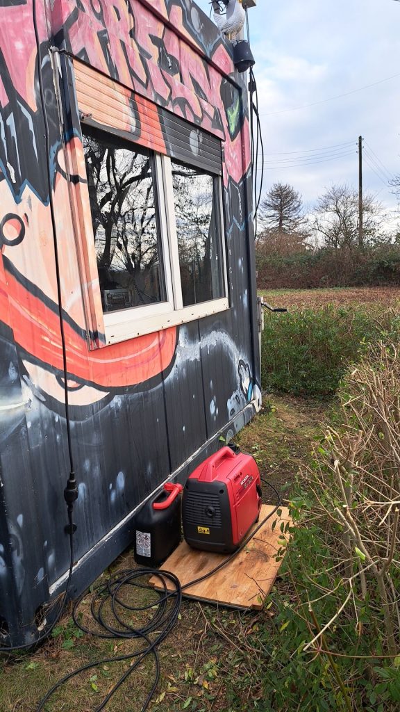 Okay – vieles davon braucht man nicht, wenn der Moppel läuft und der Strom in den Hauptanschluss des Containers eingespeist wird.